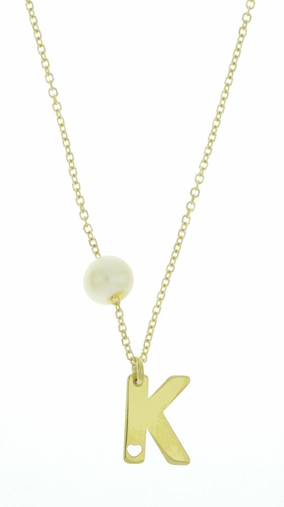 Women's Modern monogram necklace ladyQ in gold K14 (585) in yellow color with Pearl. A wonderful choice for the neck. It is offered for birthdays, or for any other happy moment of yours!!!