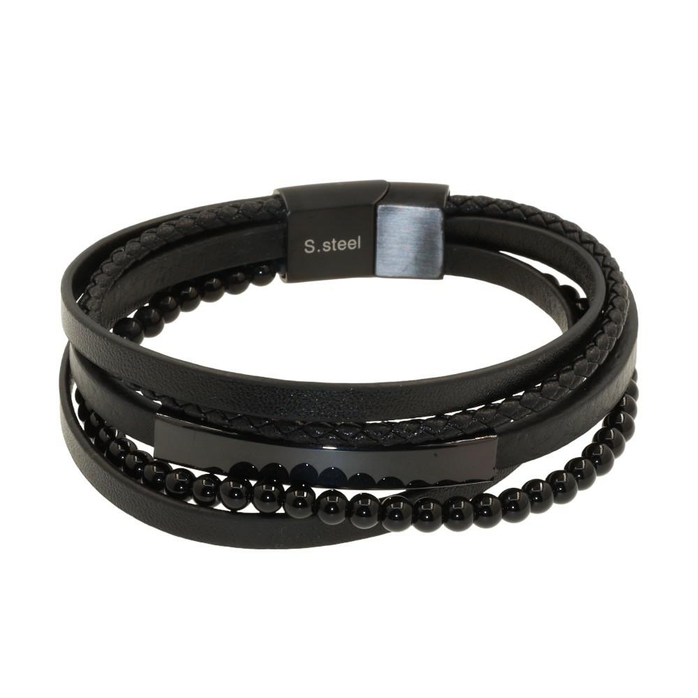 Men's manQ leather bracelet made of stainless steel in black color. A wonderful choice for the hand. It is offered for birthdays, or for any other beautiful moment of yours!!!