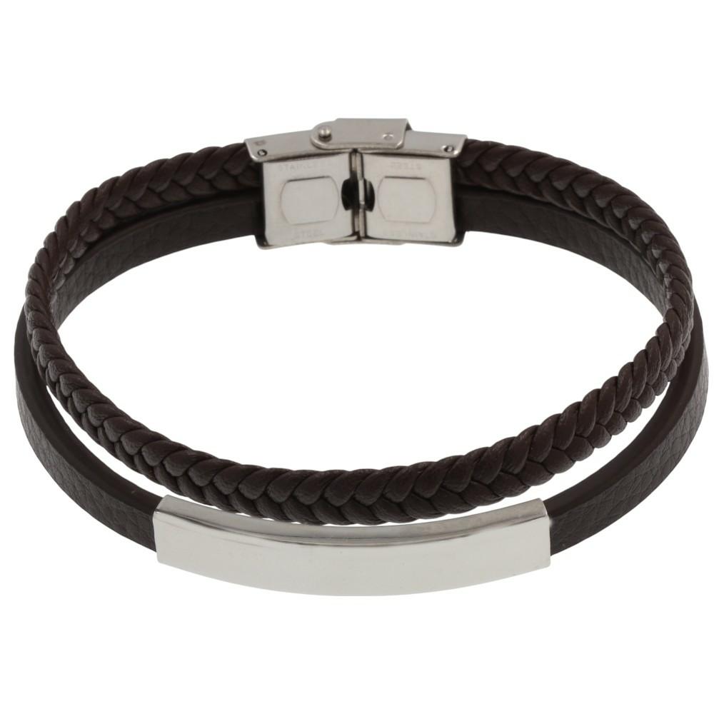 Ανδρικό δερμάτινο βραχιόλι Χειροπέδα manQ από ανοξείδωτο ατσάλι σε ασημί χρώμα. Ενα όμορφο δώρο για το χέρι. Μια όμορφη πρόταση για τα γενέθλια, πτυχίο ή για οποιαδήποτε άλλη όμορφη στιγμή σας!!!