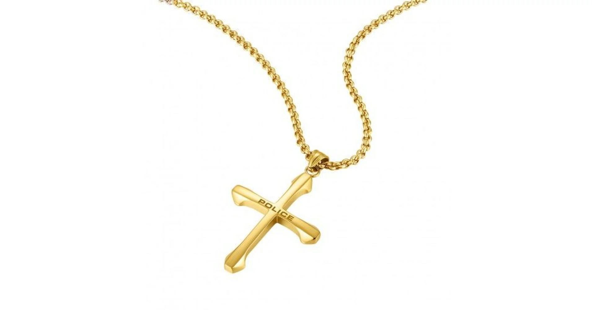 Ανδρικό Κολιέ Σταυρός με Αλυσίδα POLICE από ανοξείδωτο ατσάλι σε χρυσό χρώμα
