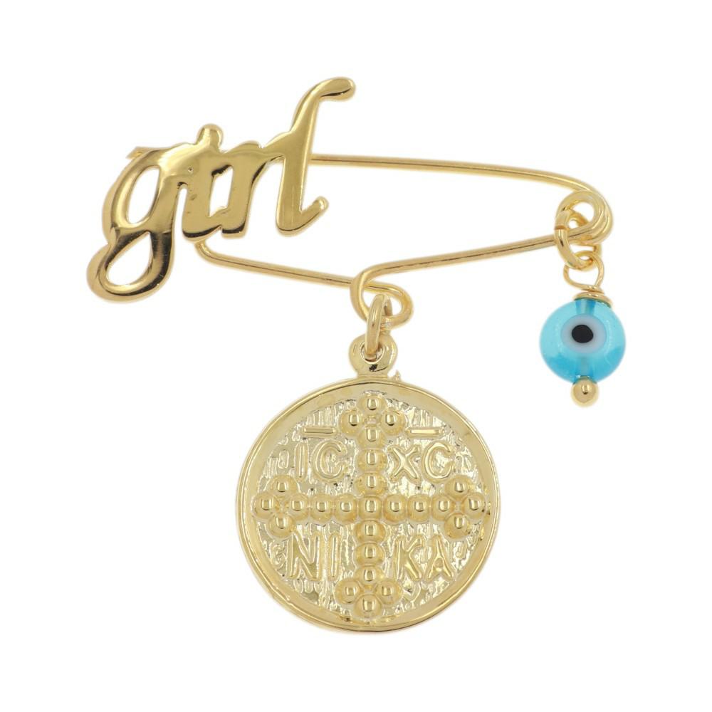 Κομψή παιδική καρφίτσα Κωνσταντινάτο babyQ, ιδανική για κοριτσάκι, κατασκευασμένη από ασήμι 925 με κίτρινο φινίρισμα. Διακοσμείται με μάτι μουράνο, που προσθέτει λάμψη και συμβολίζει προστασία από το κακό μάτι. Ελαφριά και διακριτική, φοριέται εύκολασε ρούχο ή κουβέρτα μωρού χωρίς να ενοχλεί. Αποτελεί εξαιρετική επιλογή για φυλαχτό και ταιριάζει ως δώρο γέννησης ή βάπτισης. Είναι επίσης όμορφη πρόταση για ξεχωριστές οικογενειακές στιγμές.