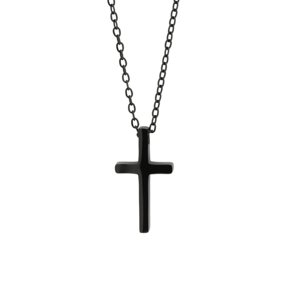 Ανδρικός Σταυρός με αλυσίδα manQ από ανοξείδωτο ατσάλι σε μαύρο χρώμα