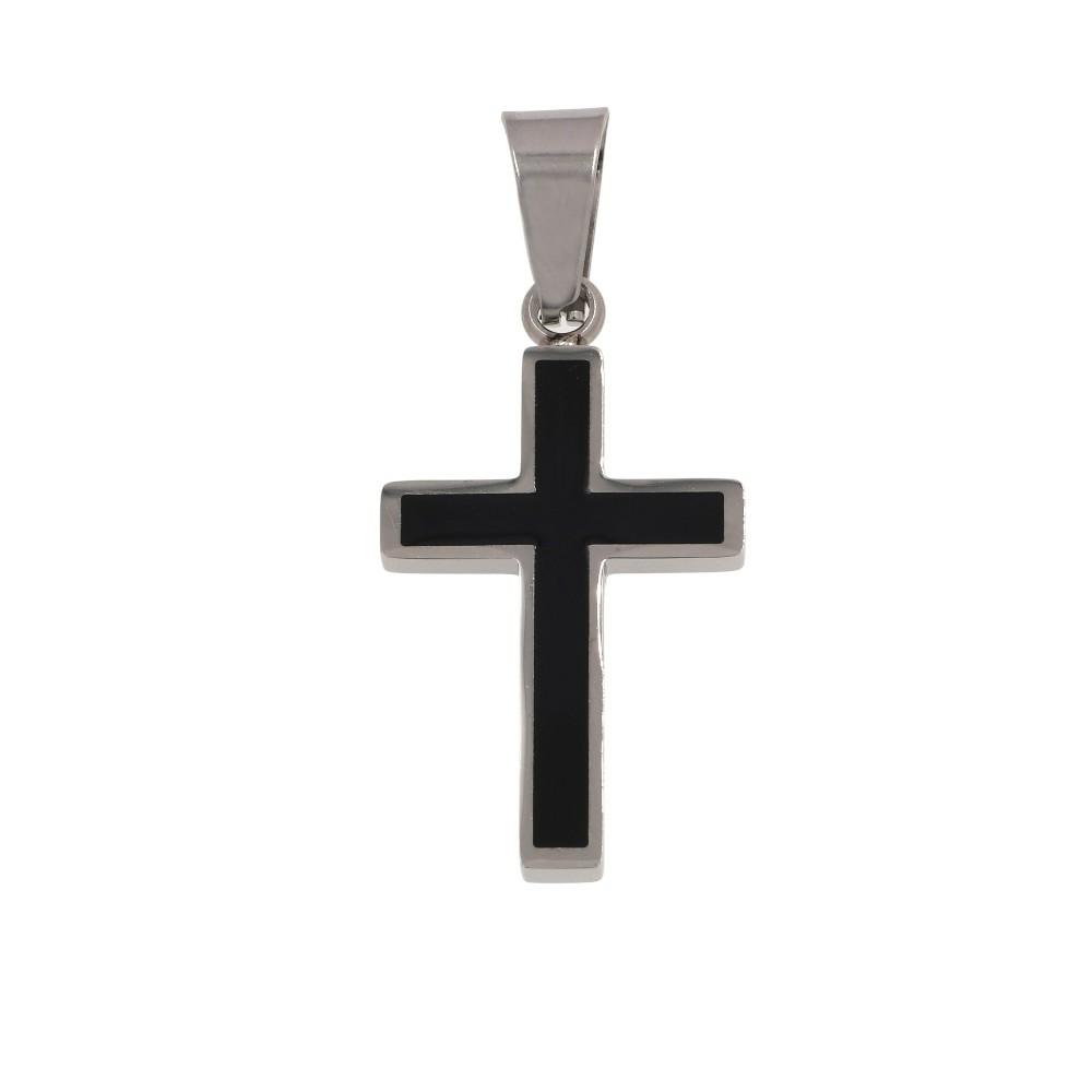 Ανδρικός Σταυρός manQ από ανοξείδωτο ατσάλι σε ασημί-μαύρο χρώμα