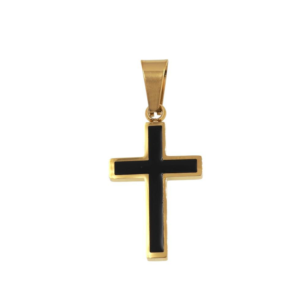 Ανδρικός Σταυρός manQ από ανοξείδωτο ατσάλι σε χρυσό-μαύρο χρώμα