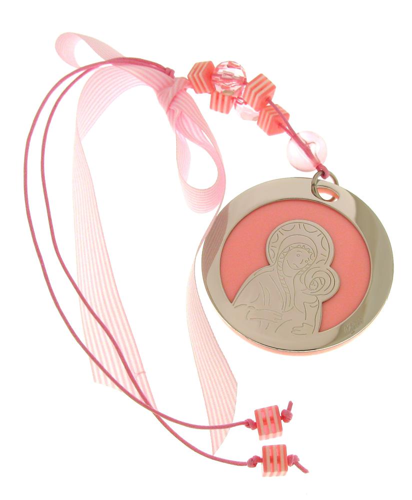 Παιδικό Γούρι Παναγία με το Θείο Βρέφος babyQ από ανοξείδωτο ατσάλι σε ροζ χρώμα 421269