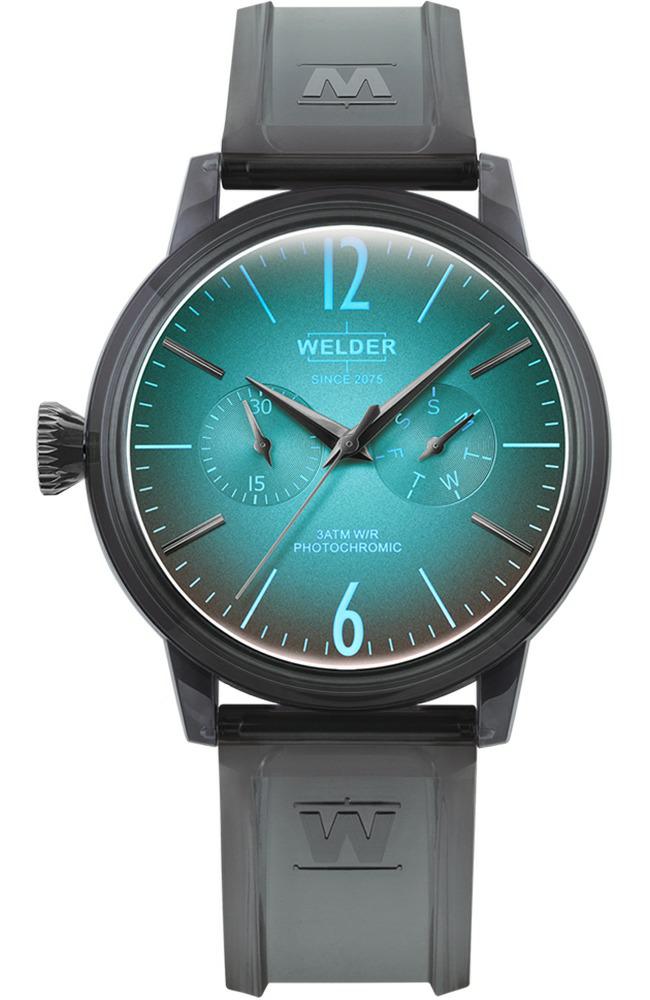 αναλογικό ρολόι χεριού με μηχανισμό Quartz από την Welder, με πλαίσιο από Polycarbonate σε μαύρο χρώμα. Λουράκι μαύρο από υποαλλεργική σιλικόνη και καντράν από Πολύχρωμο. Ενα μοντέρνο ρολόι για το χέρι. Προσφέρεται για τα γενέθλια,