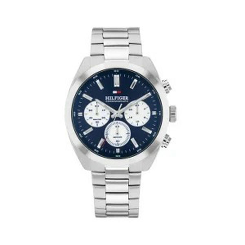 Ανδρικό αναλογικό ρολόι χεριού με μηχανισμό Quartz πολλαπλών ενδείξεων 40mm από την TOMMY HILFIGER, με πλαίσιο και μπρασελλέ από ανοξείδωτο ατσάλι σε ασημί χρώμα και καντράν Μπλέ. Ενα εξαιρετικό ρολόι για το χέρι. Μια όμορφη πρόταση για τα γενέθλια,ή για οποιαδήποτε άλλη όμορφη στιγμή σας!!!
