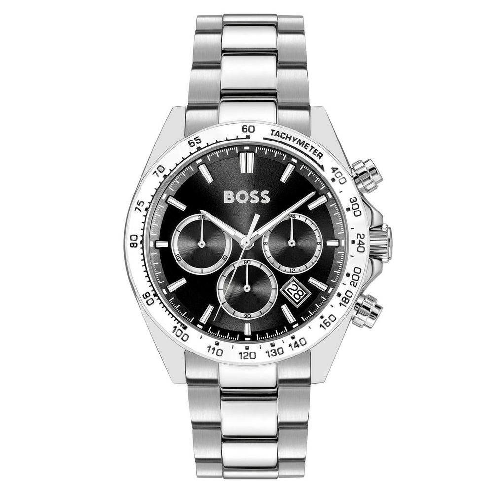 Ανδρικό αναλογικό ρολόι χεριού με μηχανισμό Quartz χρονογράφο boss, με πλαίσιο και μπρασελλέ από ανοξείδωτο ατσάλι σε ασημί χρώμα και καντράν μαύρο. Ενα διαχρονικό ρολόι για το χέρι. Μια όμορφη πρόταση για τα γενέθλια, για την επέτειο, για τον κουμπάρο πτυχίο ή για οποιαδήποτε άλλη όμορφη στιγμή σας!!!
