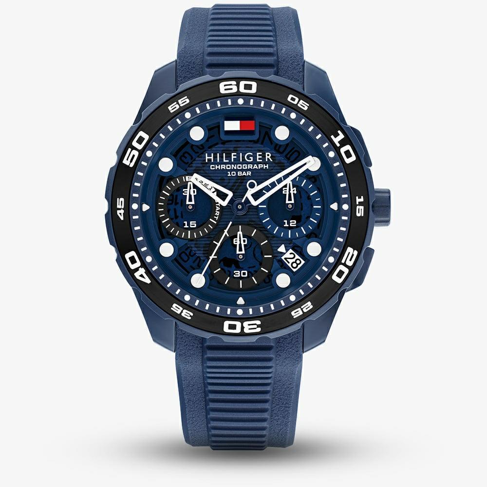 Ανδρικό sport ρολόι Tommy Hilfiger με αναλογική ένδειξη και μηχανισμό Quartz χρονογράφου, ιδανικό για καθημερινή χρήση. Η κάσα διαμέτρου 41mm διαθέτει ασημί πλαίσιο από ανοξείδωτο ατσάλι, προσφέροντας αντοχή και κομψή εμφάνιση. Το μπλε καντράν δένειαρμονικά με το μπλε λουράκι από υποαλλεργική σιλικόνη για άνετη εφαρμογή. Μια πρακτική και στιλάτη επιλογή, κατάλληλη για δώρο σε γενέθλια ή ξεχωριστές περιστάσεις.