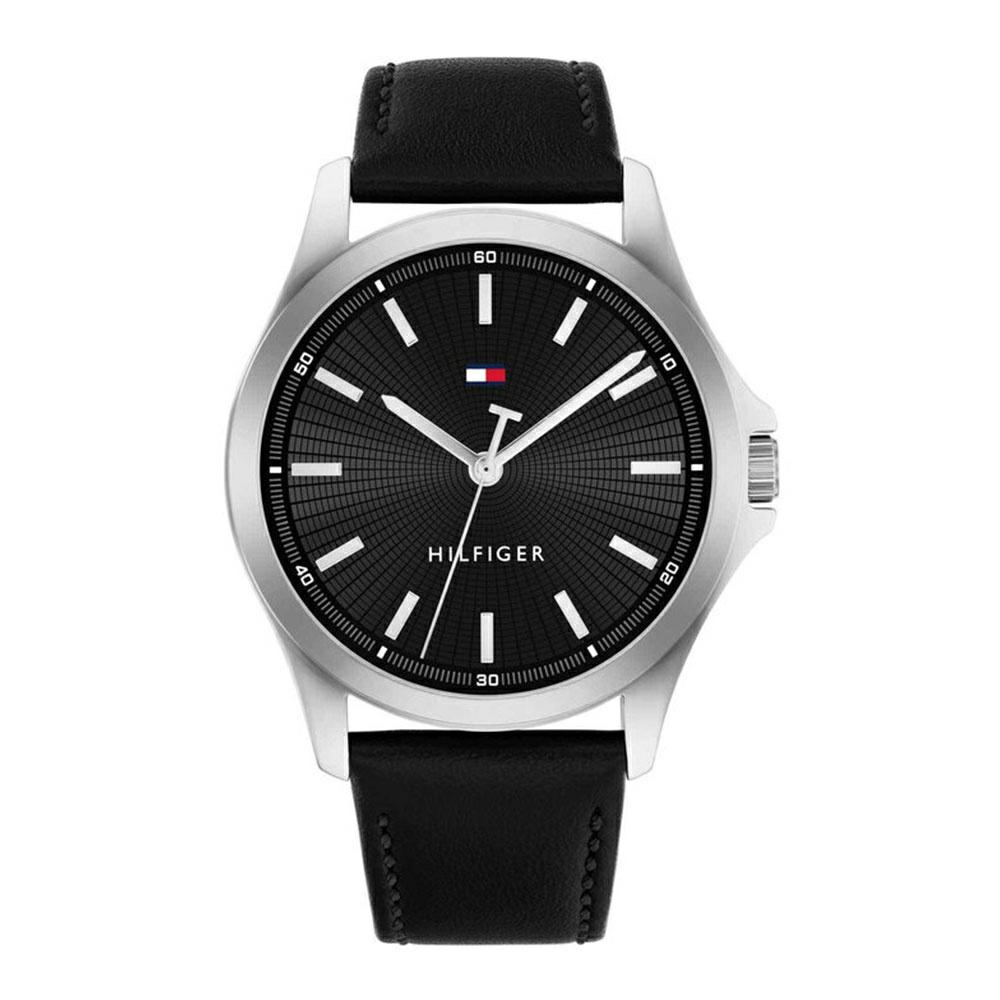 Ανδρικό αναλογικό ρολόι TOMMY HILFIGER με αξιόπιστο μηχανισμό Quartz και διάμετρο κάσας 41mm, ιδανικό για καθημερινή χρήση αλλά και πιο προσεγμένες εμφανίσεις. Διαθέτει πλαίσιο από ανοξείδωτο ατσάλι σε ασημί απόχρωση, που προσθέτει διακριτική λάμψη και αντοχή. Το μαύρο καντράν προσφέρει κομψή, καθαρή όψη, ενώ το λουράκι από γνήσιο μαύρο δέρμα εξασφαλίζει άνετη εφαρμογή. Μια εξαιρετική επιλογή και ως δώρο.