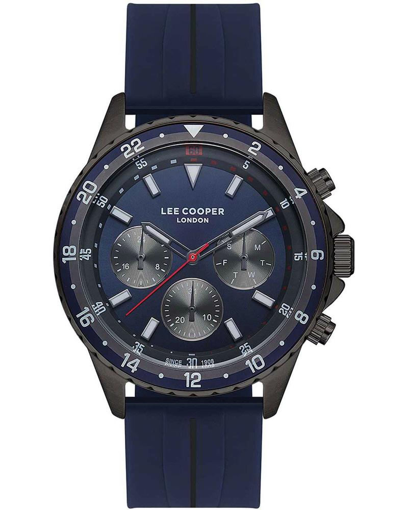 Ανδρικό αναλογικό ρολόι χεριού με μηχανισμό Quartz lee cooper, με πλαίσιο από Supermetal σε ανθρακί χρώμα. Λουράκι μπλέ από υποαλλεργική σιλικόνη και καντράν Μπλέ. Ενα ξεχωριστό ρολόι για το χέρι. Μια όμορφη πρόταση για τα γενέθλια, πτυχίο ή για οποιαδήποτε άλλη όμορφη στιγμή σας!!!