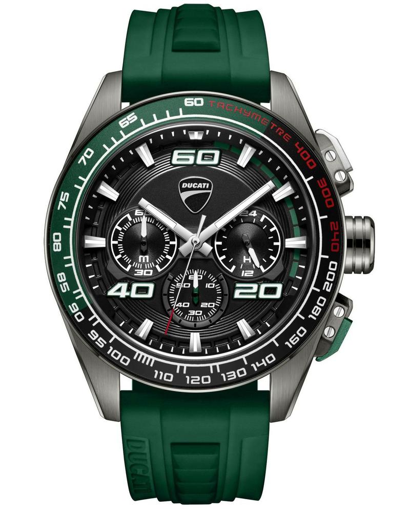 Ανδρικό αναλογικό ρολόι χεριού με μηχανισμό Quartz χρονογράφο απο την DUCATI, με πλαίσιο από ανοξείδωτο ατσάλι σε ανθρακί χρώμα. Λουράκι πράσινο από καουτσούκ και καντράν μαύρο. Ενα sport ρολόι για το χέρι. Μια όμορφη πρόταση για τα γενέθλια, πτυχίο ή για οποιαδήποτε άλλη όμορφη στιγμή σας!!!