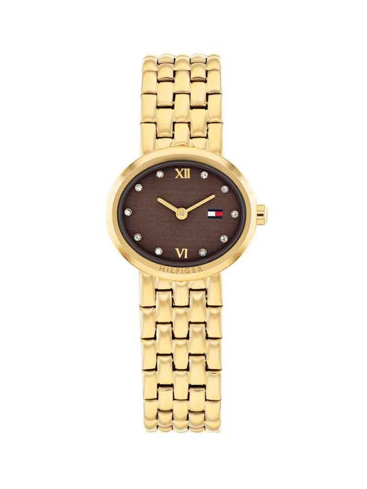 Γυναικείο αναλογικό ρολόι χεριού με μηχανισμό Quartz από την TOMMY HILFIGER, με πλαίσιο και μπρασελλέ από ανοξείδωτο ατσάλι σε χρυσό χρώμα και καντράν Καφέ. Ενα σικάτο ρολόι για το χέρι. Προσφέρεται για τα γενέθλια, πτυχίο ή για οποιαδήποτε άλλη χαρούμενη στιγμή σας!!!
