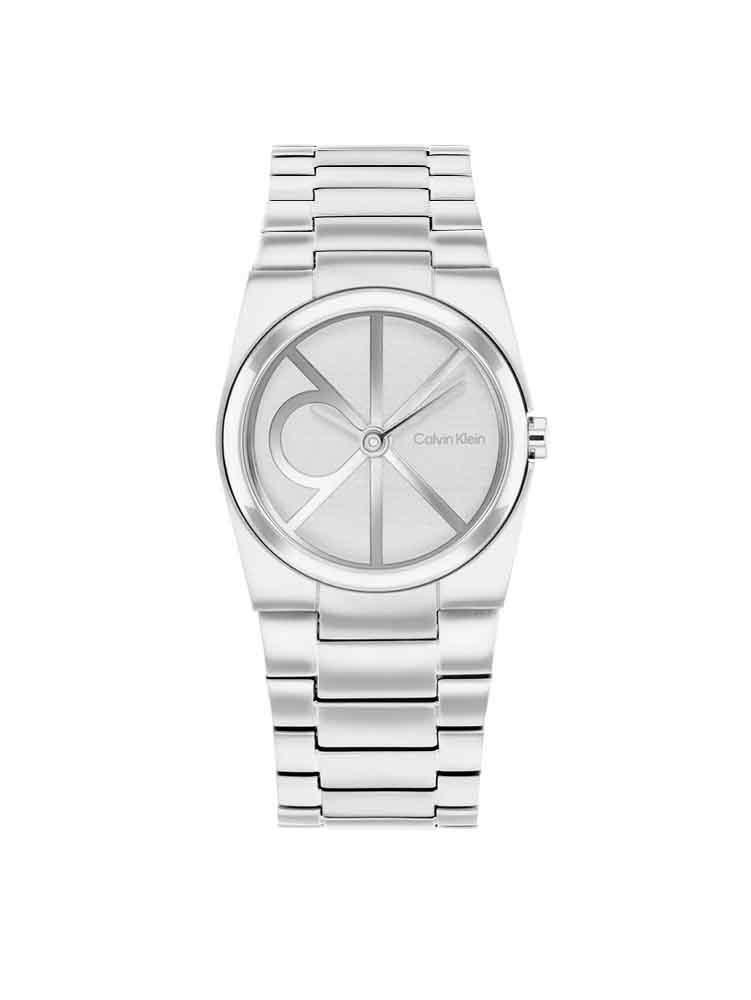 Γυναικείο αναλογικό ρολόι χεριού με μηχανισμό Quartz 23mm απότην Calvin Klein, με πλαίσιο και μπρασελλέ από ανοξείδωτο ατσάλι σε ασημί χρώμα και καντράν Ασημί. Ενα μοντέρνο ρολόι για το χέρι. Μια όμορφη πρόταση για τα γενέθλια, πτυχίο ή για οποιαδήποτε άλλη χαρούμενη στιγμή σας!!!