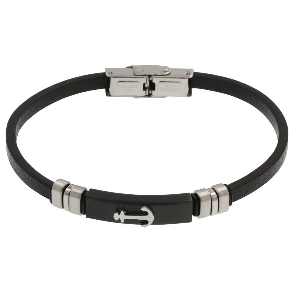 Ανδρικό Βραχιόλι manQ από ανοξείδωτο ατσάλι σε ασημί-μαύρο χρώμα 446438