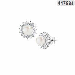 Γυναικεία Σκουλαρίκια Ροζέτες AMEN από ασήμι 925 σε ασημί χρώμα με Πέρλες και Σίγκνιτι Star