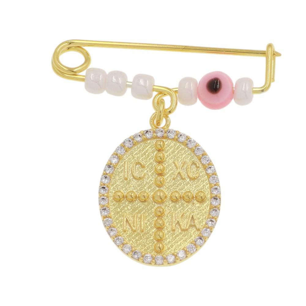 Παιδική Καρφίτσα Κωνσταντινάτο babyQ από ασήμι 925 σε κίτρινο χρώμα με Σίγκνιτι Star 447815