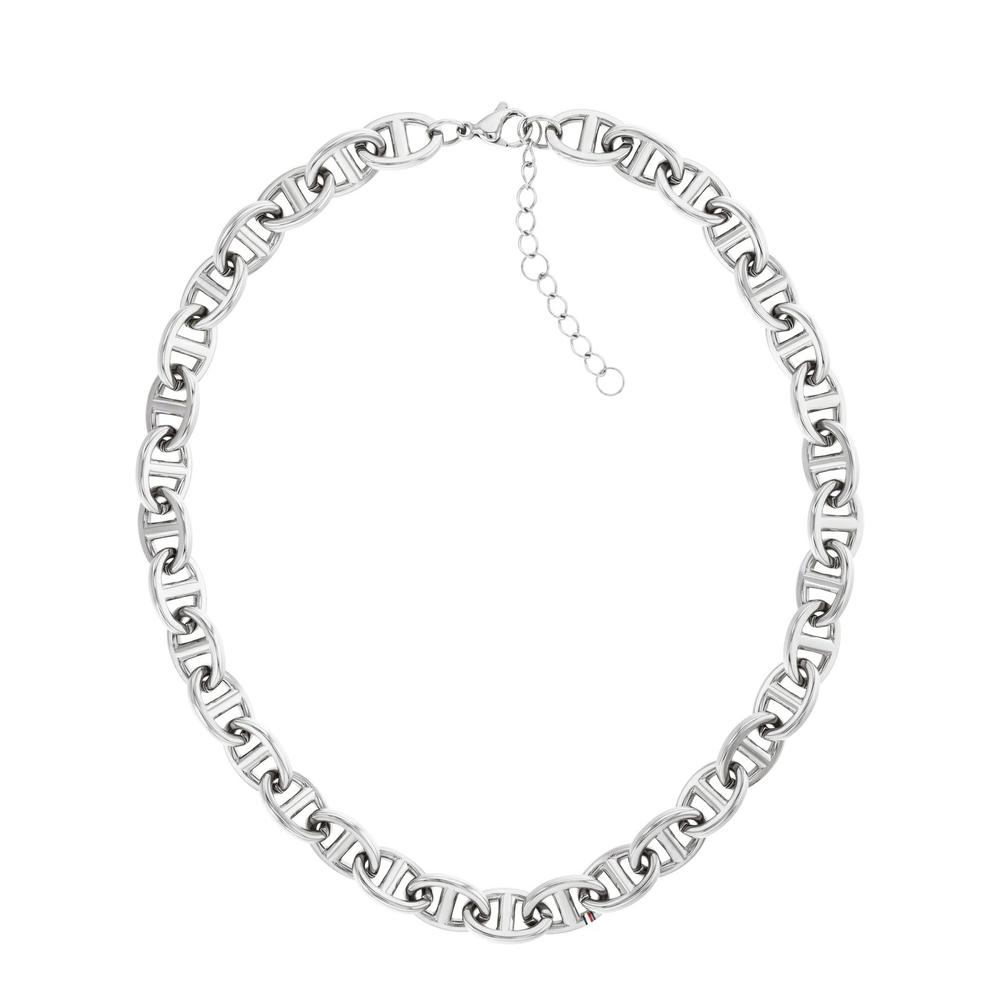 Μοντέρνο γυναικείο κολιέ TOMMY HILFIGER σε μορφή αλυσίδας, κατασκευασμένο από ανθεκτικό ανοξείδωτο ατσάλι με κομψό ασημί φινίρισμα. Ξεχωρίζει για τη διαχρονική του αισθητική και την καθαρή, minimal γραμμή που ταιριάζει εύκολα με καθημερινά ή πιο επίσημα σύνολα. Είναι άνετο στη χρήση και ιδανικό για να αναδεικνύει τον λαιμό με διακριτική λάμψη. Εξαιρετική επιλογή δώρου για γενέθλια, επέτειο ή γιορτινή περίσταση.