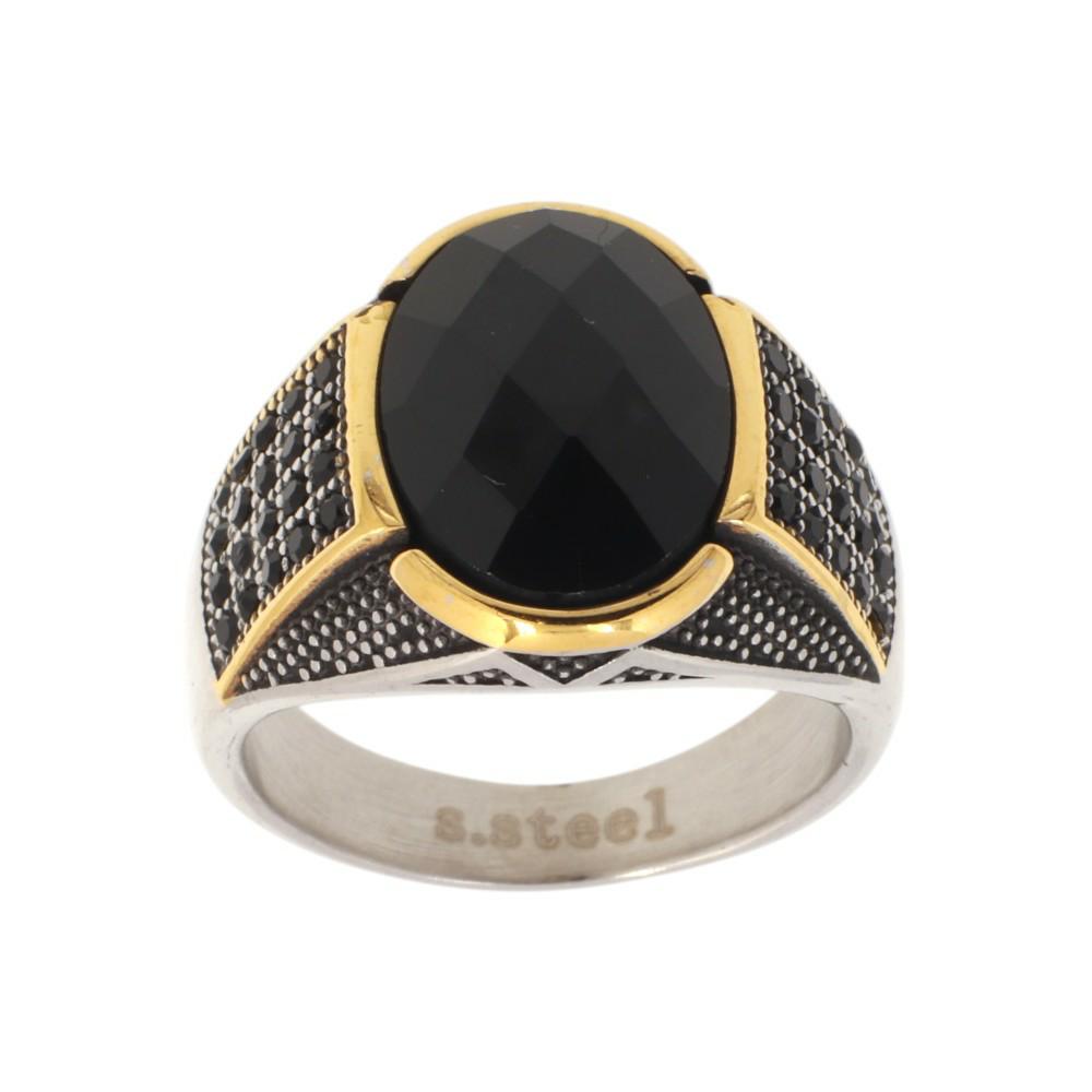 Ανδρικό Δακτυλίδι manQ από ανοξείδωτο ατσάλι σε δίχρωμο με Όνυχα 446481