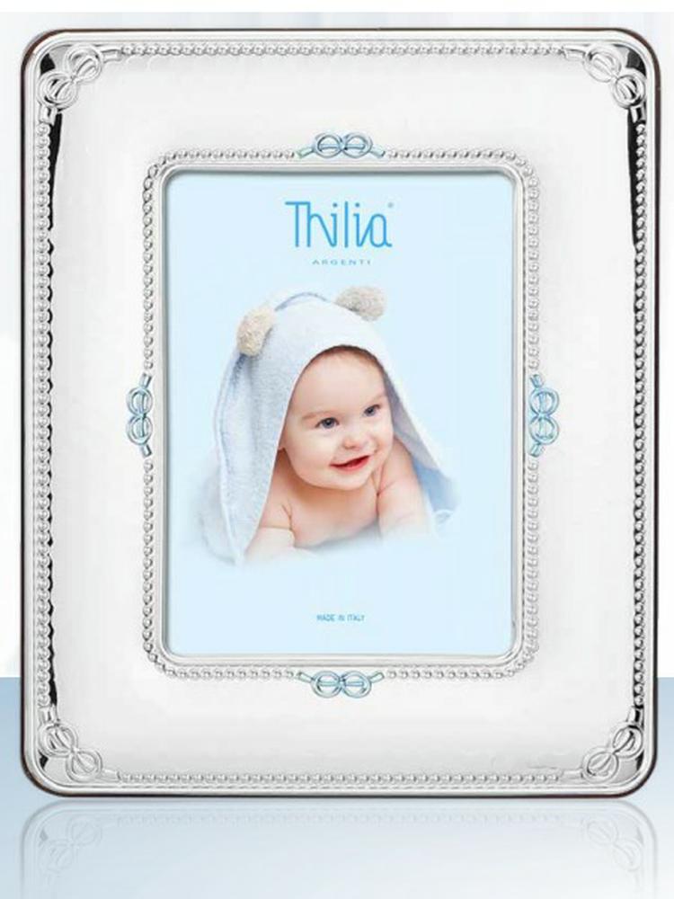 Παιδική κορνίζα φιογκάκι babyQ για αγοράκι από ασήμι 925 σε σιέλ χρώμα με Σμάλτο. Μία φανταστική επιλογή για δώρο για το μωρό. Προσφέρεται για τη γέννηση, για τη βάπτιση, του!!!