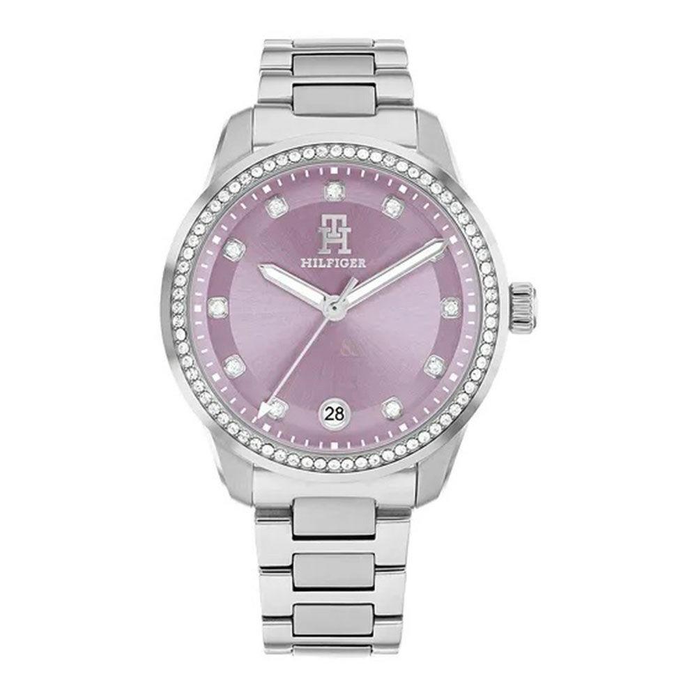 Γυναικείο αναλογικό ρολόι χεριού με μηχανισμό Quartz από την TOMMY HILFIGER, με πλαίσιο και μπρασελλέ από ανοξείδωτο ατσάλι σε ασημί χρώμα και καντράν Μώβ. Ενα ξεχωριστό ρολόι για το χέρι. Μια όμορφη πρόταση για τα γενέθλια, για την επέτειο, πτυχίοή για οποιαδήποτε άλλη χαρούμενη στιγμή σας!!!