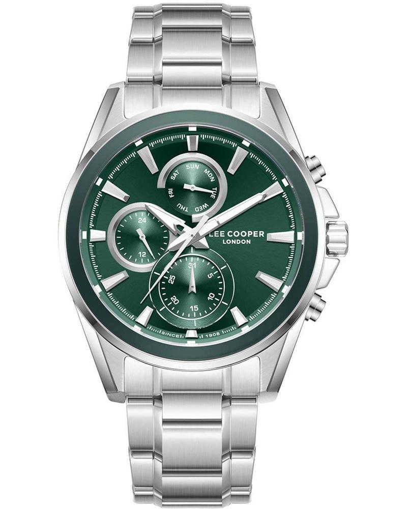 Ανδρικό αναλογικό ρολόι χεριού με μηχανισμό Quartz lee cooper, με πλαίσιο και μπρασελλέ από Supermetal σε ασημί χρώμα και καντράν πράσινο Πράσινο. Ενα μοντέρνο ρολόι για το χέρι. Προσφέρεται για τα γενέθλια, πτυχίο ή για οποιαδήποτε άλλη όμορφη στιγμή σας!!!