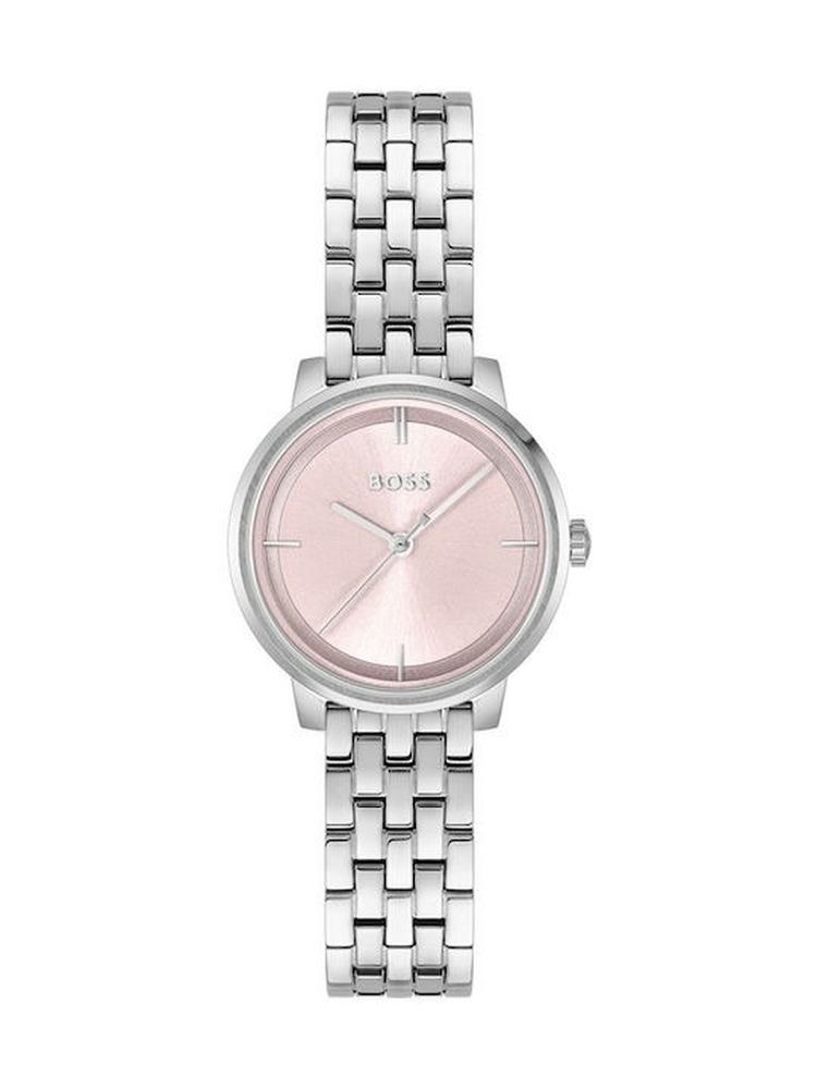 Γυναικείο αναλογικό ρολόι χεριού με μηχανισμό Quartz boss, με πλαίσιο και μπρασελλέ από ανοξείδωτο ατσάλι σε ασημί χρώμα και καντράν ροζ. Ενα μοντέρνο ρολόι για το χέρι. Χρήσιμο για τα γενέθλια, για την κουμπάρα πτυχίο ή για οποιαδήποτε άλλη χαρούμενη στιγμή σας!!!