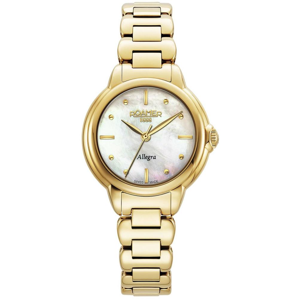 Γυναικείο αναλογικό ρολόι χεριού με μηχανισμό Quartz από την ROAMER, με πλαίσιο και μπρασελλέ από ανοξείδωτο ατσάλι σε χρυσό χρώμα και καντράν Φίλντισι. Ενα διαχρονικό ρολόι για το χέρι. Προσφέρεται για το γάμο ή τον αρραβώνα, για τα γενέθλια, ή γιαοποιαδήποτε άλλη χαρούμενη στιγμή σας!!!