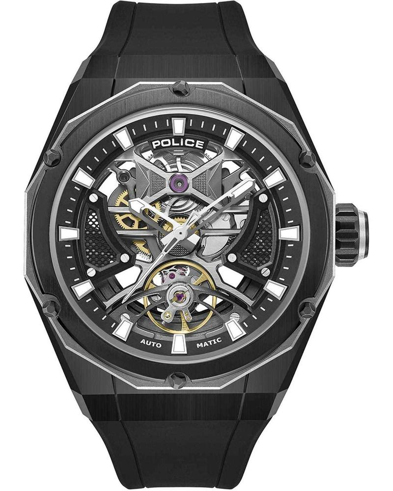 Ανδρικό μηχανικό ρολόι χεριού με μηχανικός μηχανισμός police, με πλαίσιο από ανοξείδωτο ατσάλι σε μαύρο χρώμα. Λουράκι μαύρο από υποαλλεργική σιλικόνη και καντράν μαύρο. Ενα ξεχωριστό ρολόι για το χέρι. Μια όμορφη πρόταση για τα γενέθλια, πτυχίο ήγια οποιαδήποτε άλλη όμορφη στιγμή σας!!!