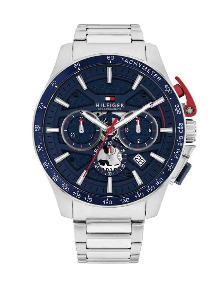 Ανδρικό αναλογικό ρολόι χεριού με μηχανισμό Quartz από την TOMMY HILFIGER, με πλαίσιο και μπρασελλέ από ανοξείδωτο ατσάλι σε ασημί χρώμα και καντράν Μπλέ. Ενα ξεχωριστό ρολόι για το χέρι. Μια όμορφη πρόταση για τα γενέθλια, πτυχίο ή για οποιαδήποτεάλλη όμορφη στιγμή σας!!!