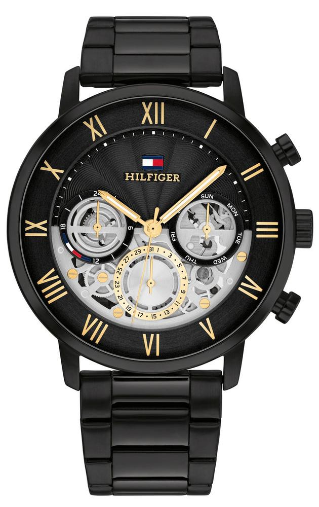 Ανδρικό αναλογικό ρολόι χεριού με μηχανισμό Quartz από την TOMMY HILFIGER, με πλαίσιο και μπρασελλέ από ανοξείδωτο ατσάλι σε μαύρο χρώμα και καντράν μαύρο. Ενα ξεχωριστό ρολόι για το χέρι. Προσφέρεται για τα γενέθλια, για την επέτειο, ή για οποιαδήποτε άλλη όμορφη στιγμή σας!!!
