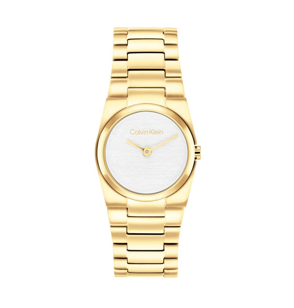 Γυναικείο αναλογικό ρολόι χεριού με μηχανισμό Quartz από την Calvin Klein, με πλαίσιο και μπρασελλέ από ανοξείδωτο ατσάλι σε χρυσό χρώμα και καντράν λευκό. Ενα ξεχωριστό ρολόι για το χέρι. Χρήσιμο για το γάμο ή τον αρραβώνα, για τα γενέθλια, για τηνκουμπάρα ή για οποιαδήποτε άλλη χαρούμενη στιγμή σας!!!