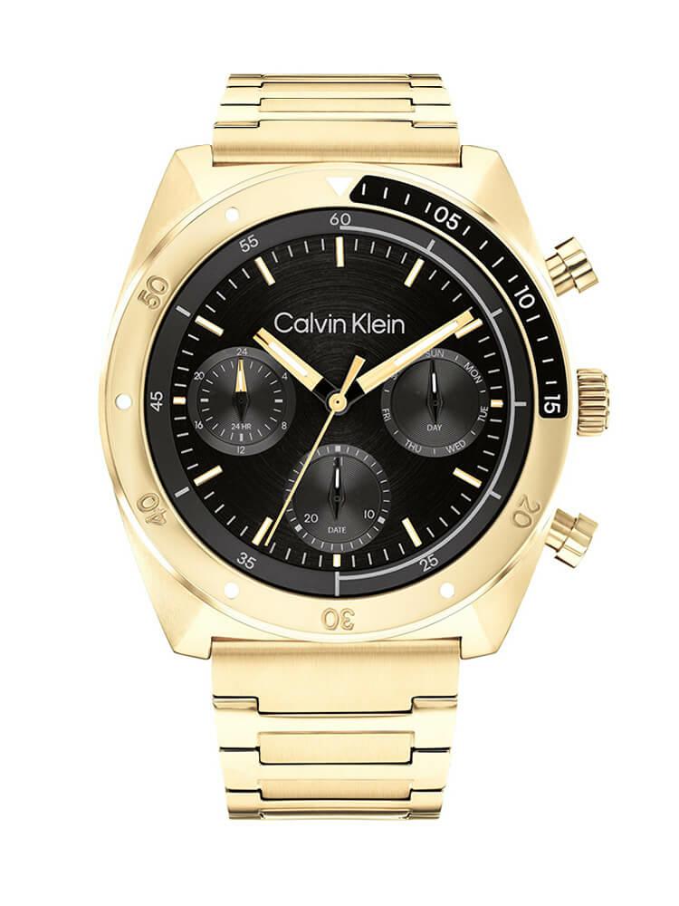 Ανδρικό αναλογικό ρολόι Calvin Klein με μηχανισμό Quartz και πολλαπλές ενδείξεις, που συνδυάζει κομψότητα και σύγχρονο ύφος. Η κάσα 41mm και το μπρασελέ από ανοξείδωτο ατσάλι σε χρυσή απόχρωση δημιουργούν εντυπωσιακή αντίθεση με το μαύρο καντράν, προσφέροντας διαχρονικό χαρακτήρα. Ιδανική επιλογή για όσους θέλουν ένα ιδιαίτερο αξεσουάρ, αλλά και για δώρο σε γενέθλια, επέτειο ή αποφοίτηση.