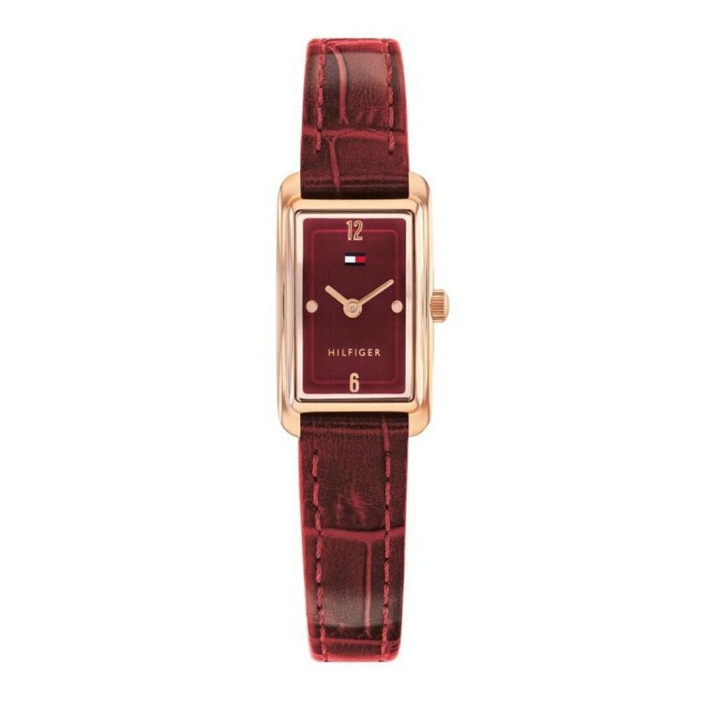Γυναικείο αναλογικό ρολόι χειρός TOMMY HILFIGER με αξιόπιστο μηχανισμό Quartz και κομψή κάσα 23mm. Το πλαίσιο από ανοξείδωτο ατσάλι σε απόχρωση ροζ χρυσού χαρίζει διακριτική λάμψη, ενώ το μπορντό καντράν δένει αρμονικά με το λουράκι από γνήσιο δέρμαστην ίδια βαθιά απόχρωση. Ιδανικό για καθημερινό στυλ αλλά και πιο ιδιαίτερες εμφανίσεις, αποτελεί υπέροχο δώρο για γενέθλια ή γιορτινές περιστάσεις.