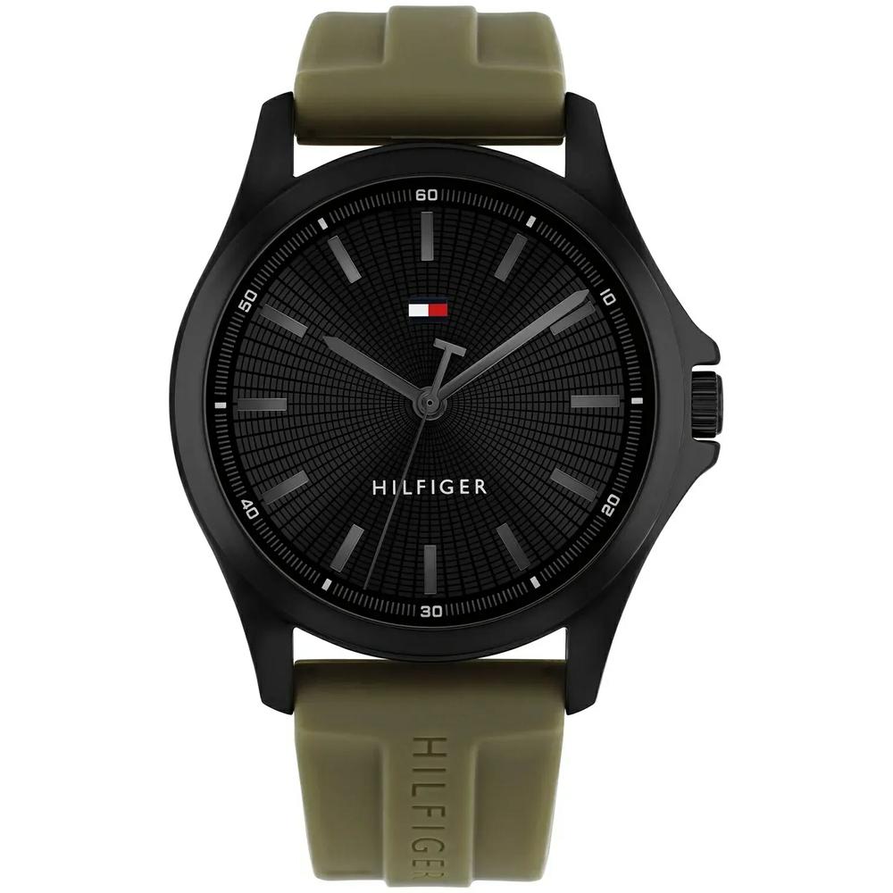 Ανδρικό sport ρολόι χειρός TOMMY HILFIGER με αξιόπιστο μηχανισμό Quartz και κάσα 41mm. Το πλαίσιο από ανοξείδωτο ατσάλι σε μαύρη απόχρωση προσφέρει ανθεκτικότητα και μοντέρνο ύφος. Συνδυάζεται με χακί λουράκι από υποαλλεργική σιλικόνη για άνετη εφαρμογή στην καθημερινότητα. Το λαδί καντράν ολοκληρώνει την outdoor αισθητική του, ιδανικό για casual εμφανίσεις. Εξαιρετική επιλογή για δώρο γενεθλίων ή ξεχωριστή περίσταση.