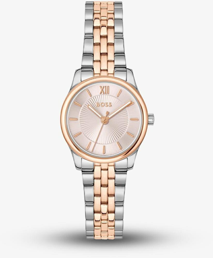 Γυναικείο αναλογικό ρολόι χειρός με αξιόπιστο μηχανισμό Quartz και κάσα 23mm BOSS. Διαθέτει πλαίσιο και μπρασελέ από ανοξείδωτο ατσάλι, σε κομψό δίχρωμο φινίρισμα ασημί και ροζ χρυσό, που ταιριάζει εύκολα με κάθε εμφάνιση. Το ροζ καντράν προσθέτει ρομαντική, μοντέρνα πινελιά και αναδεικνύει το διακριτικό του στυλ. Ιδανική επιλογή για δώρο σε γενέθλια, επέτειο, πτυχίο ή άλλη χαρούμενη περίσταση.